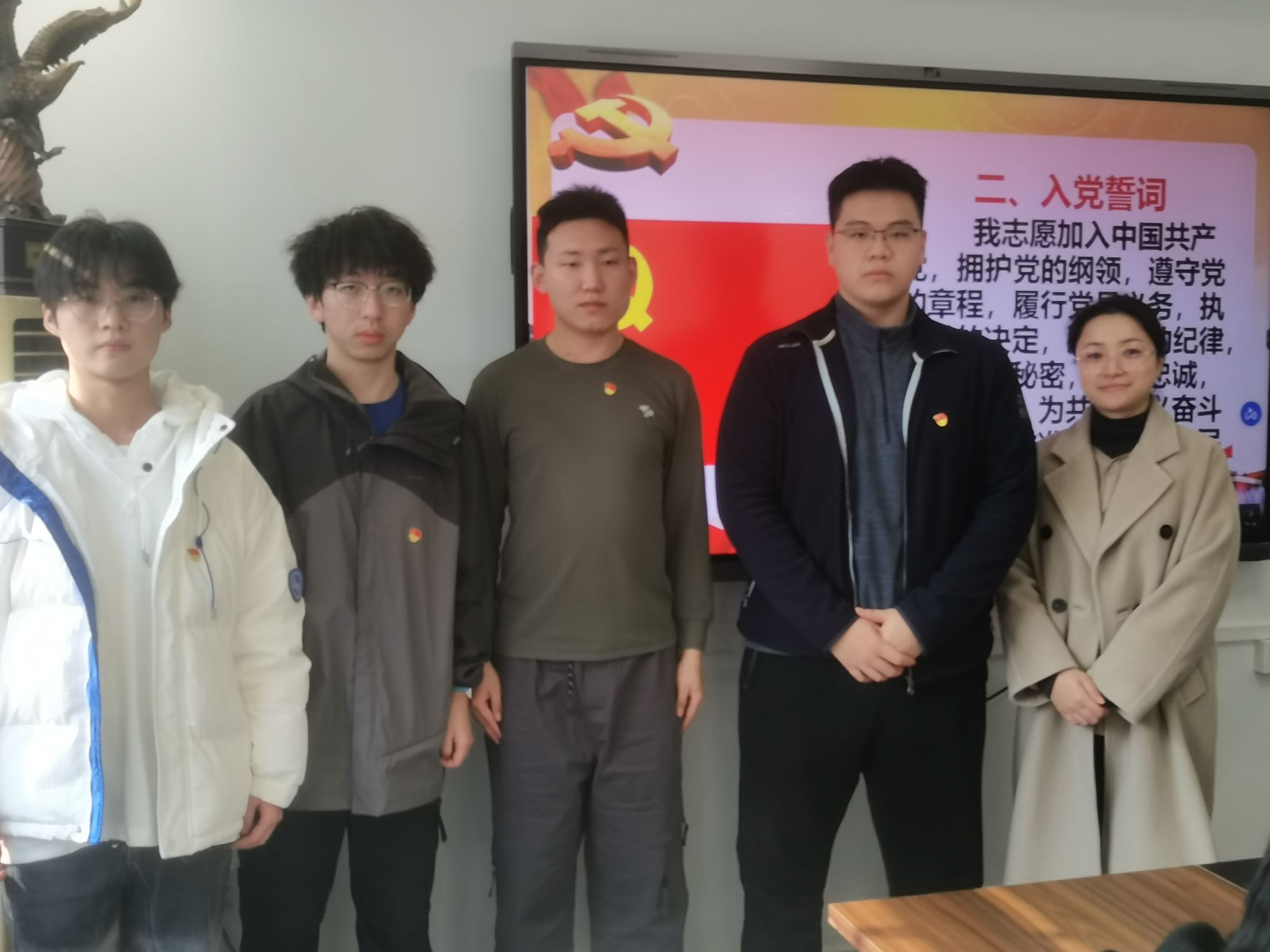 图7:屈璐老师与四位新预备党员