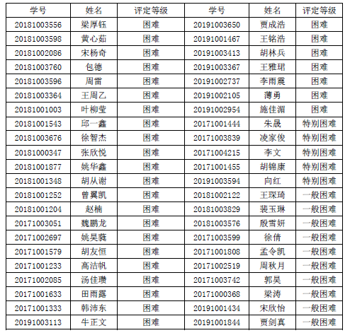 根据《beat365英国官网网站家庭经济困难学生认定办法(修订)》的规定,遵循“公平、公正、公开、合理分配资助资源”的原则,经学生本人申请、班级民主评议小组评议、学院审核,现将认定结果公示如下: