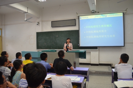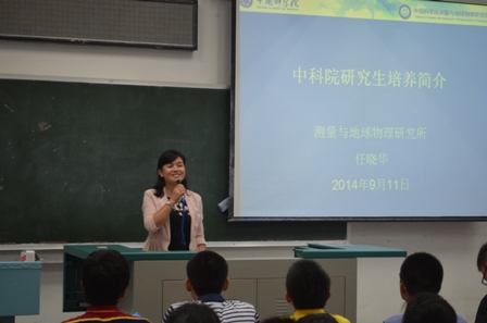 2014年9月11日下午,中国科学院测量与地球物理研究所(简称中科院测地所)副所长倪四道老师与该所四级高管兼人事教育处处长任晓华老师来到我校,与beat365官网新生进行了为时两个小时的报告交流。