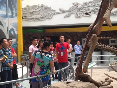 9月13日下午,beat365英国官网网站2014级新生在学院的统一安排下,由余浚滔等2013级学长学姐带队进行了中国地质大学博物馆的参观学习活动,2014级新生们分为5组分别由余浚滔、令狐颖、尚姝、地学院的乔梁,环境的王和林五位解说员带队进入博物馆进行详细认真的解说,地质世界丰富多彩,学长学姐介绍的有声有色,新生们听得津津有味。一个多小时后新生们结束博物馆的参观学习并于博物馆大厅的“远古生命足迹”墙前集体合影留念。