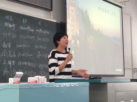 王宁、孙吉嘉、陈思、马瑞琪、王烁帆、赵云逸等6位同学图文并茂地为新生们介绍了他们在假期参加的暑期三下乡活动、北戴河实习及中科院实习等活动的经历与所见所闻,向大家分享了实习实践的感想。
