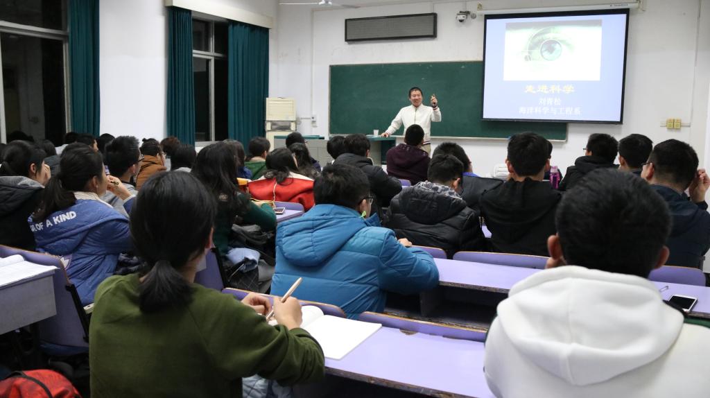 11月25日晚上19:00,beat365英国官网网站2017-2018学年地球科学菁英班“与名师面对面”系列讲座在教三楼203顺利举行,南方科技大学刘青松老师为beat365官网菁英班学生带来“走进科学”的主题讲座。