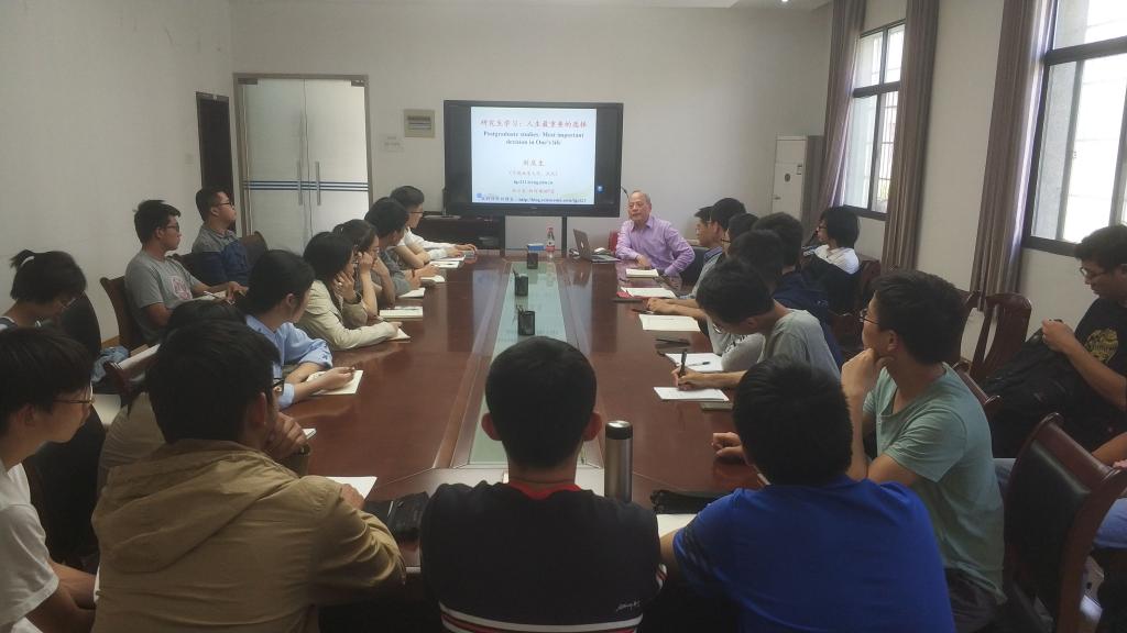 接着,刘老师结合自身科学研究经历与学习实践前人先进科学研究理念的体会,重点讲解了关于科学研究和学术论文创作两个方面内容。他提出学生必须要培养独立判断能力,并就几所世界著名大学研究生培养的理念与方法进行剖析,为同学们提出了“学术训练”的几个基本要素以及“听、说、读、写、想”在研究生学习的重要性,同时为同学们指出了学术论文创作的核心以及撰写论文过程中需要注意的几个具体问题等。座谈过程中,刘老师的讲解深入浅出,不仅有国内外名师大家的例子,还从身边的同学举例,让同学们受益匪浅。
