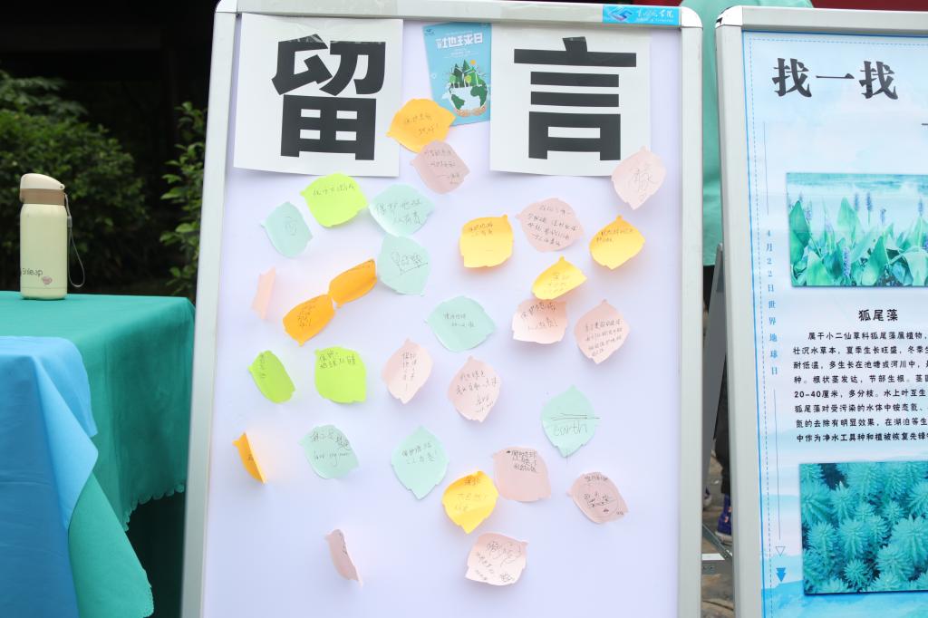 活动中,市民与学生志愿者进行了积极的知识问答互动,并在留言板纷纷签名,写下保护地球的建议与承诺,留下自己对地球的美好祝愿。
