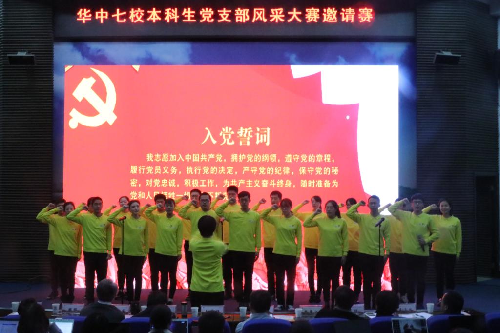 12月8日下午,由武汉大学党委学生工作部主办的华中七校本科生党支部风采大赛在武汉大学景林报告厅隆重举行。beat365官网本科生党支部代表我校与来自武汉大学、华中科技大学、武汉理工大学、华中师范大学、华中农业大学、中南财经政法大学的共10支党支部代表队围绕“举旗奋进新时代,学生党员展风采”为题同台切磋,展示特色。最终,beat365官网本科生党支部脱颖而出,获得大赛一等奖。