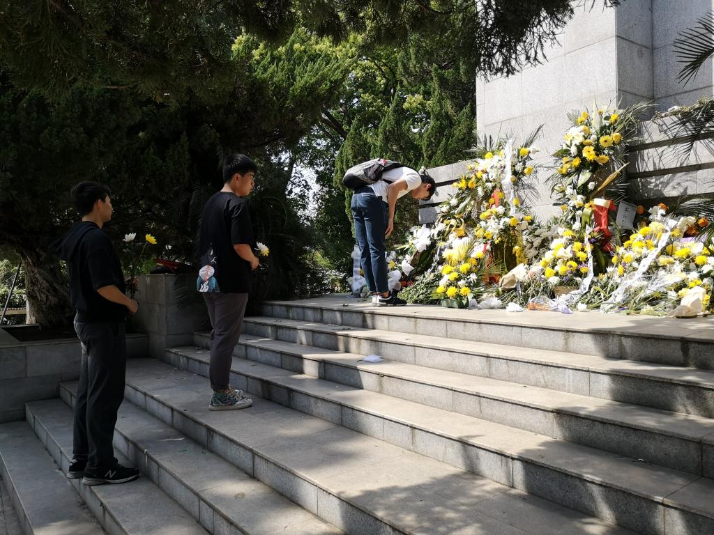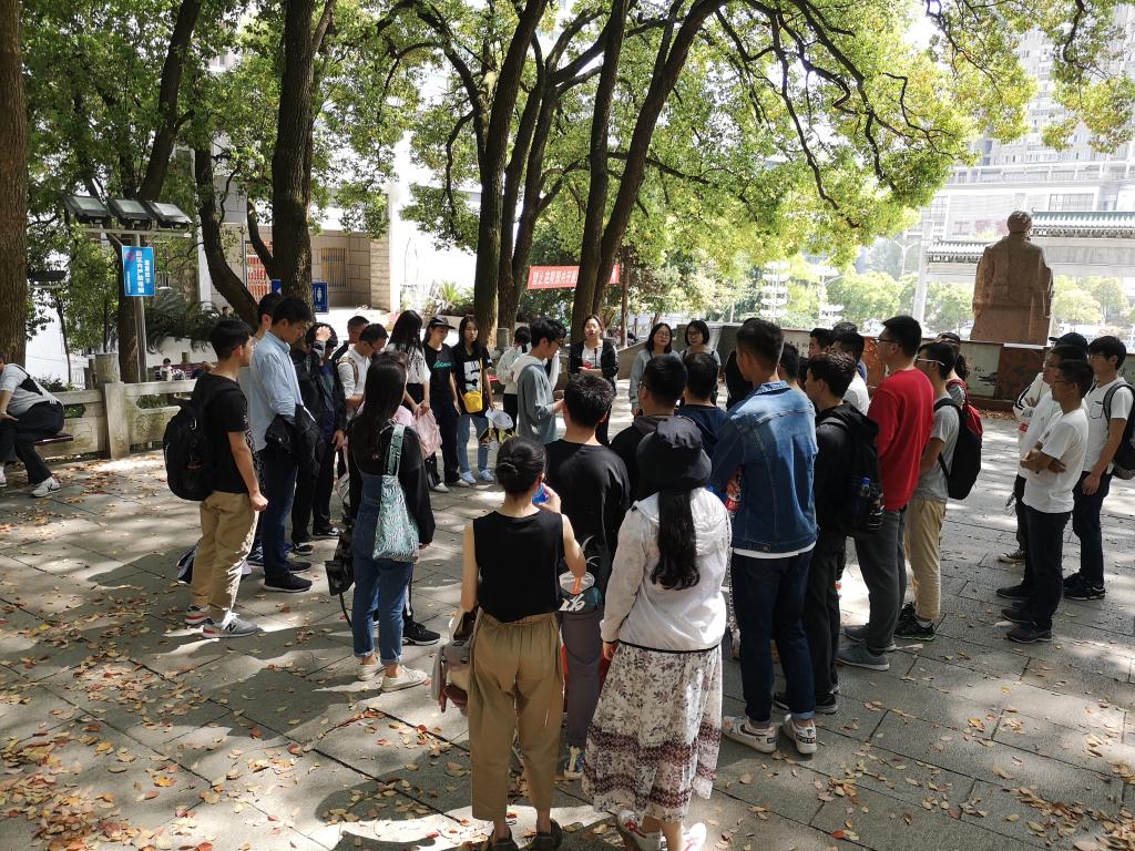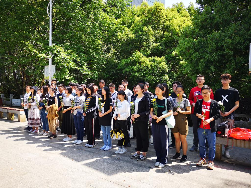 之后,大家徒步行至施洋烈士纪念碑前,全体同学面向纪念碑默哀一分钟,深刻缅怀施洋同志面对强敌,威武不能屈,一身浩然正气和无私无畏的革命英雄气慨,随后同学们依次向施洋烈士敬献鲜花。