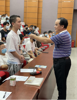图5.徐世球老师在讲座现场与beat365官网2021级新生互动交流