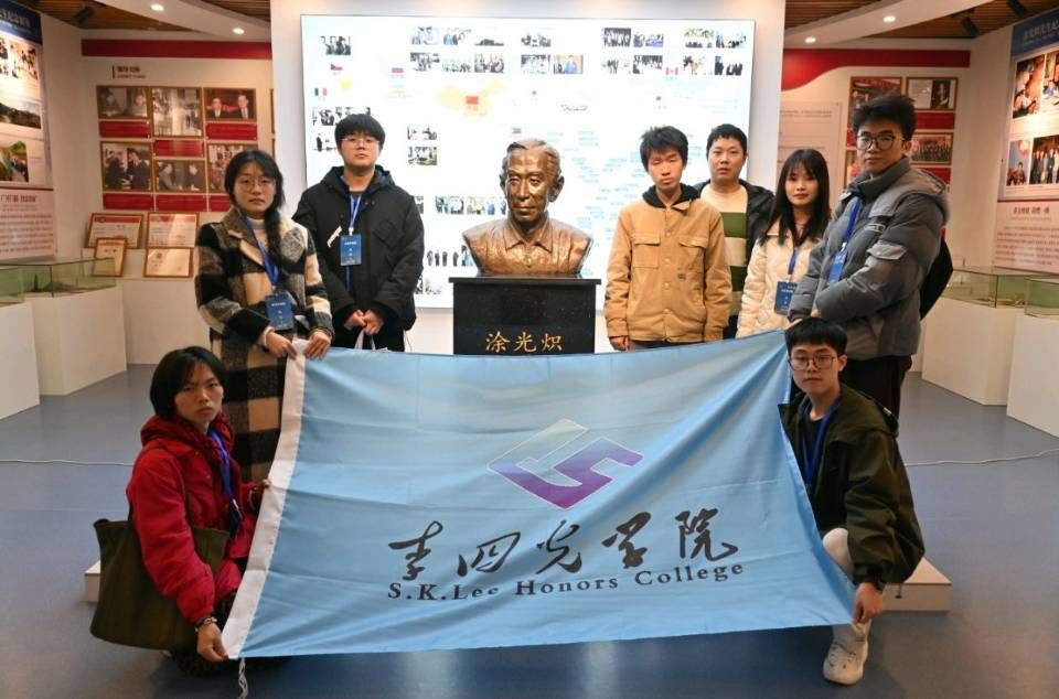 会议第二项。跟随着志愿者的脚步,菁英学子们来到了涂光炽院士纪念展室。一幅涂光炽先生一生“坦坦荡荡做人,勤勤恳恳做事,严严谨谨做学问”的人生画卷在菁英学子面前缓缓展开。