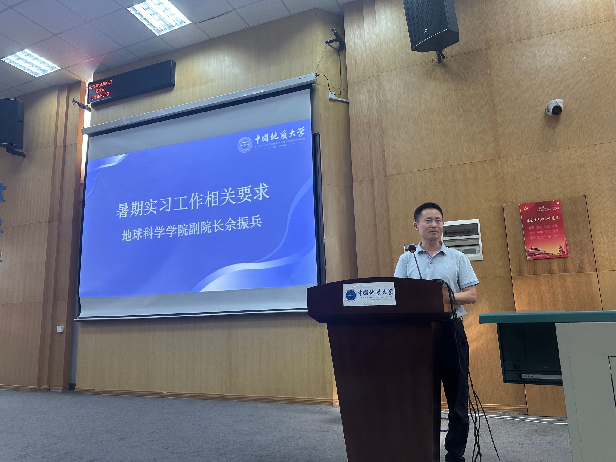 图1 地学院院长佘振兵老师为学生介绍暑期实习工作相关要求