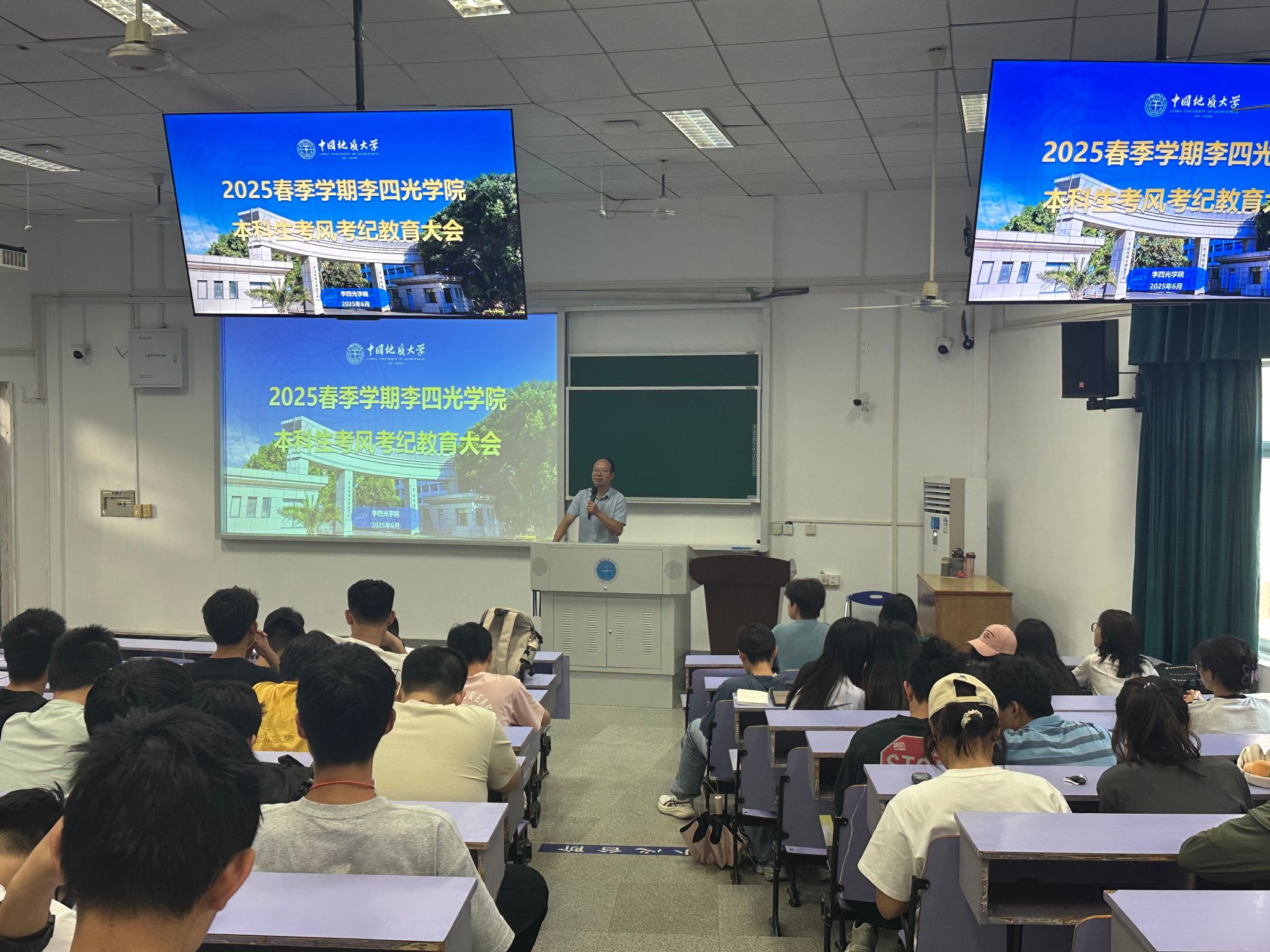 (通讯员:李君沂)2025年6月6日下午16:30,beat365英国官网网站与地球科学学院在教三楼109教室联合举办2025年暑期实习动员大会暨考风考纪教育大会。本次会议旨在部署暑期野外实习工作,强调实习安全与纪律,同时为即将到来的期末考试周做好诚信教育。