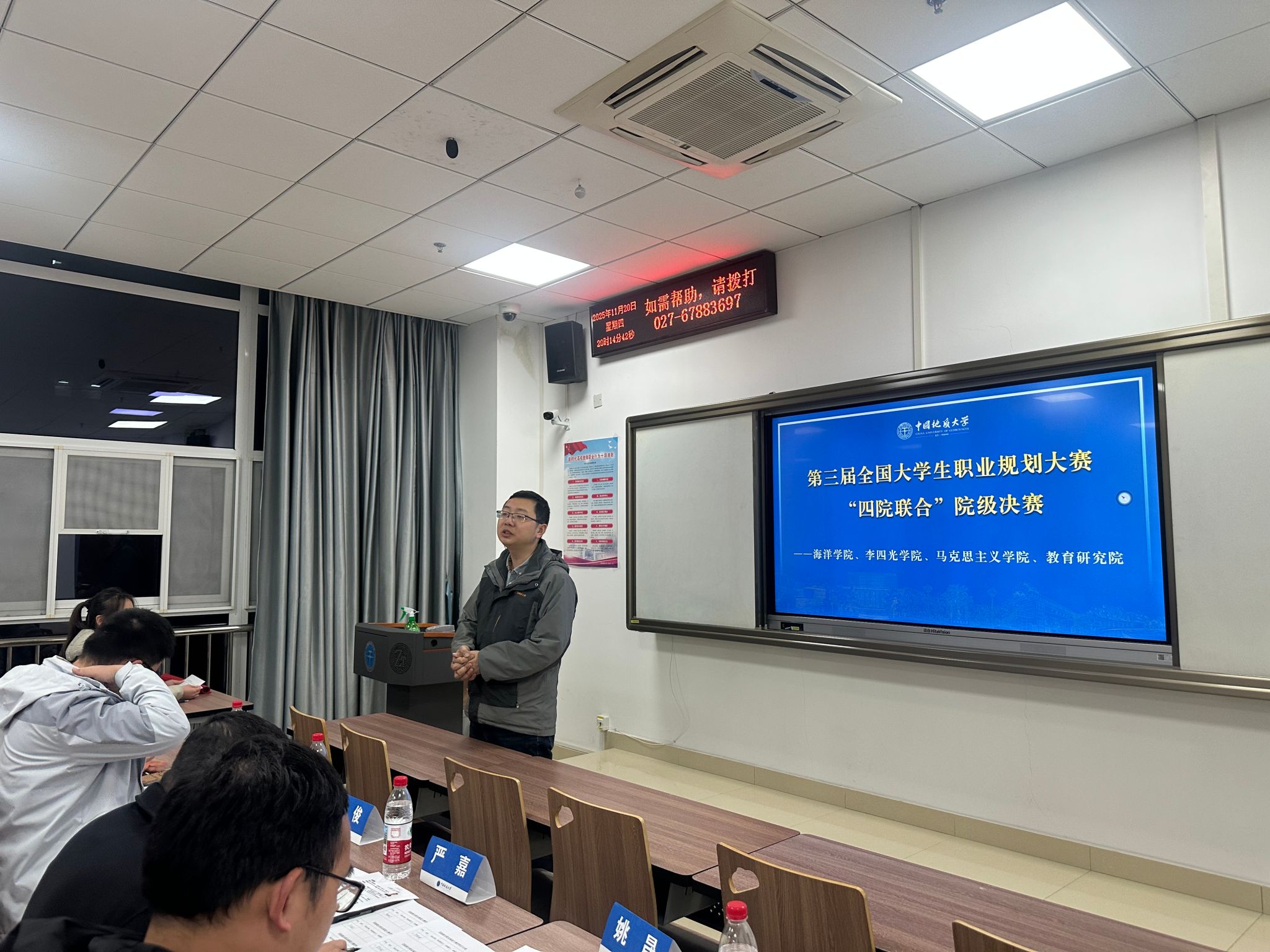 为深化高校生涯教育内涵建设,强化就业指导服务实效,引导大学生树立科学职业观与发展观,11月20日晚,由马克思主义学院、海洋学院、beat365英国官网网站、教育研究院联合主办的第三届大学生职业规划大赛决赛在东区综合楼顺利落幕。经过院级初赛、专题培训等多轮严格筛选与激烈角逐,来自四院的12名优秀学子从众多参赛者中脱颖而出,在决赛舞台上充分展现了新时代青年的职业追求与青春担当。
