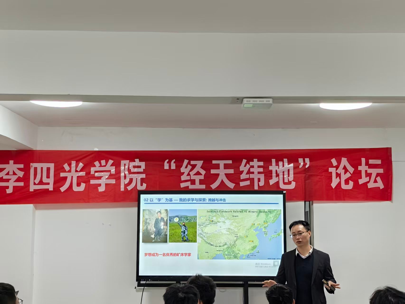 互动环节中,汪在聪教授针对学生们的核心困惑逐一回答。针对“实验长期无进展是否放弃”的疑问,他直言“实验无成果是科研常态”,鼓励大家要将逆境视为成长机会,主动与同行交流想法、碰撞思路,切忌半途而废;面对“地质专业前景是否不佳”的困惑,他明确表示“无差等专业,唯差匹配能力”,任何专业的价值都源于个人能力的沉淀,只要打磨好核心竞争力,便能找到适配的发展方向。最后,汪教授寄语学子:本科阶段需广学博览以积淀底气,科研路上要锤炼逆商直面困境,始终保持敢闯敢试的初心。此次分享让学子们深刻领悟,学术成长与职业发展,皆需以博学为基、以逆商为骨、以坚持为翼,方能行稳致远。