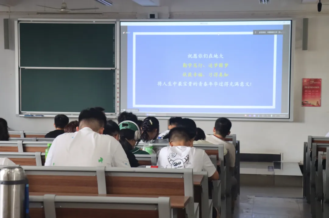 9月4日上午8点30分,校党委书记刘杰在西区弘毅堂为全体新生带来开学第一课《勤学笃行,追梦圆梦,做新时代挺膺担当地大人》。学院学生共分为两组进行聆听,除了线下参与学习的学生代表外,兼职辅导员查琴积极组织新生们在北综楼302观看同步直播。开学第一课不仅揭开了了解建校历史的新篇章,也让同学们汲取了地大优秀地质人的榜样精神,纷纷表示将努力学习,立志为地球科学的发展贡献自己的力量。