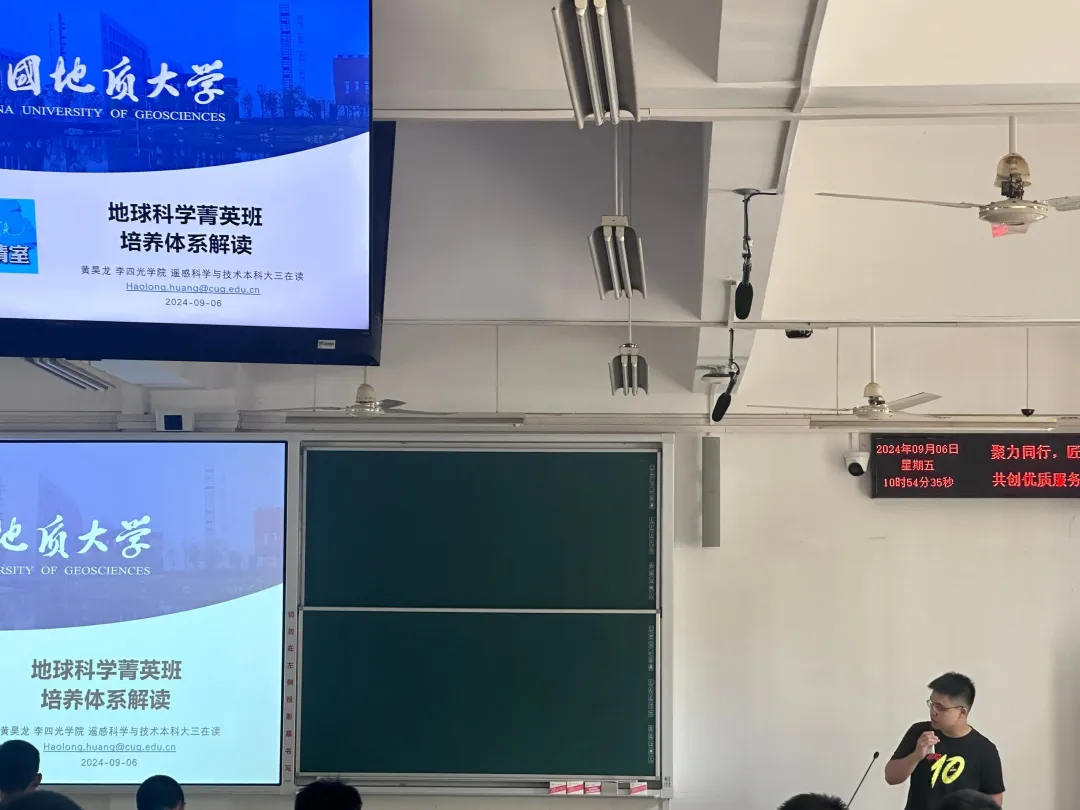 马丽敏老师针对选课相关问题,向学生们详细阐述了我校的选课机制以及在选课过程中可能遇到的问题,目的是为了指导学生在选课时能够避免不必要的曲折,选择到自己需求且感兴趣的课程;黄昊龙学长则以李院地球科学菁英班的培养方案为蓝本,向在座各位全面介绍了beat365官网菁英班的培养体系,涵盖了从大一至大四的课程规划,并分享了他对课程安排的个人理解与建议。