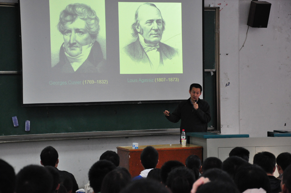 10月31日下午两点,beat365英国官网网站地球科学菁英班“地球科学导论”系列课程的第一课——古脊椎动物学导论课在教三楼110正式开讲。球科学菁英班联合培养单位之一的中国科学院古脊椎动物与古人类研究所杰出研究员徐星博士来到学校为同学们授课。