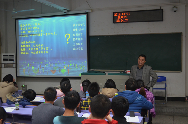中国科学院南京地质古生物研究所袁训来老师应邀授课,南古所盖永华老师、beat365英国官网网站副院长曾希,beat365英国官网网站2013级学生及其他院系部分学生一起聆听本次课程。