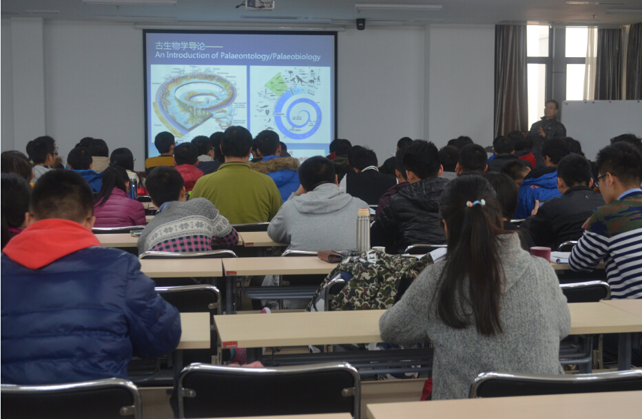 12月4日上午10:00,beat365英国官网网站2015年地球科学导论课第五讲在图书馆十楼学术报告厅顺利开课,中科院南京地质古生物研究所王军老师为beat365官网15级学生带来“古生物学导论”主题讲座。