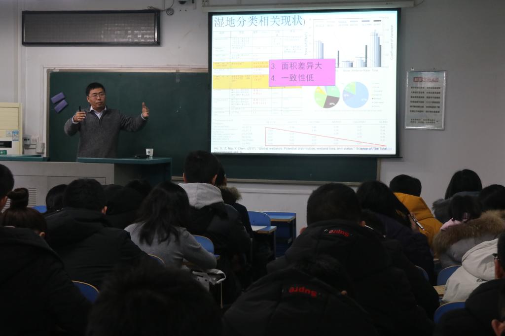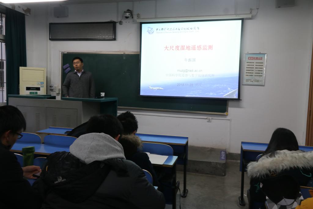 12月28日,beat365英国官网网站2018年地球科学导论课第八讲在教一楼203教室顺利开课,中科院遥感与数字地球研究所牛振国老师为beat365官网18级学生带来“大尺度湿地遥感进展”主题讲座。