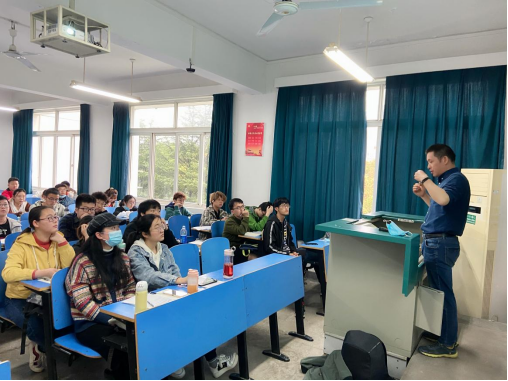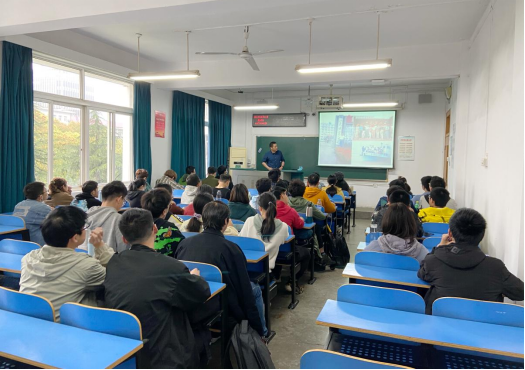 图1.盖老师向同学们介绍自己的求学经历