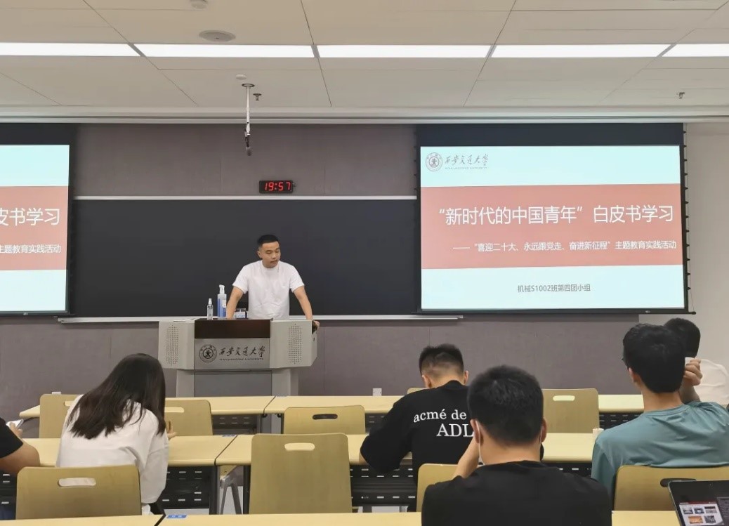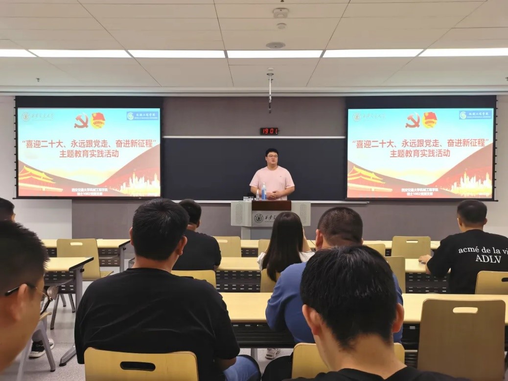 为了迎接党的二十大的召开,深入学习贯彻习近平新时代中国特色社会主义思想,团结引领支部成员坚定不移跟党走,为中国特色社会主义的发展而努力奋斗。同时也为了进一步增强党团班的一体化建设,加强党支部对团支部的引领和指导作用,增进党团支部成员的沟通和交流,进一步增强党团支部的活力和凝聚力。2022年4月26日于机械馆2-6004,党支部牵头,以团为基础组织落实开展了硕士1002党团支部一体化建设项目“喜迎二十大、永远跟党走、奋进新征程”主题教育实践活动。