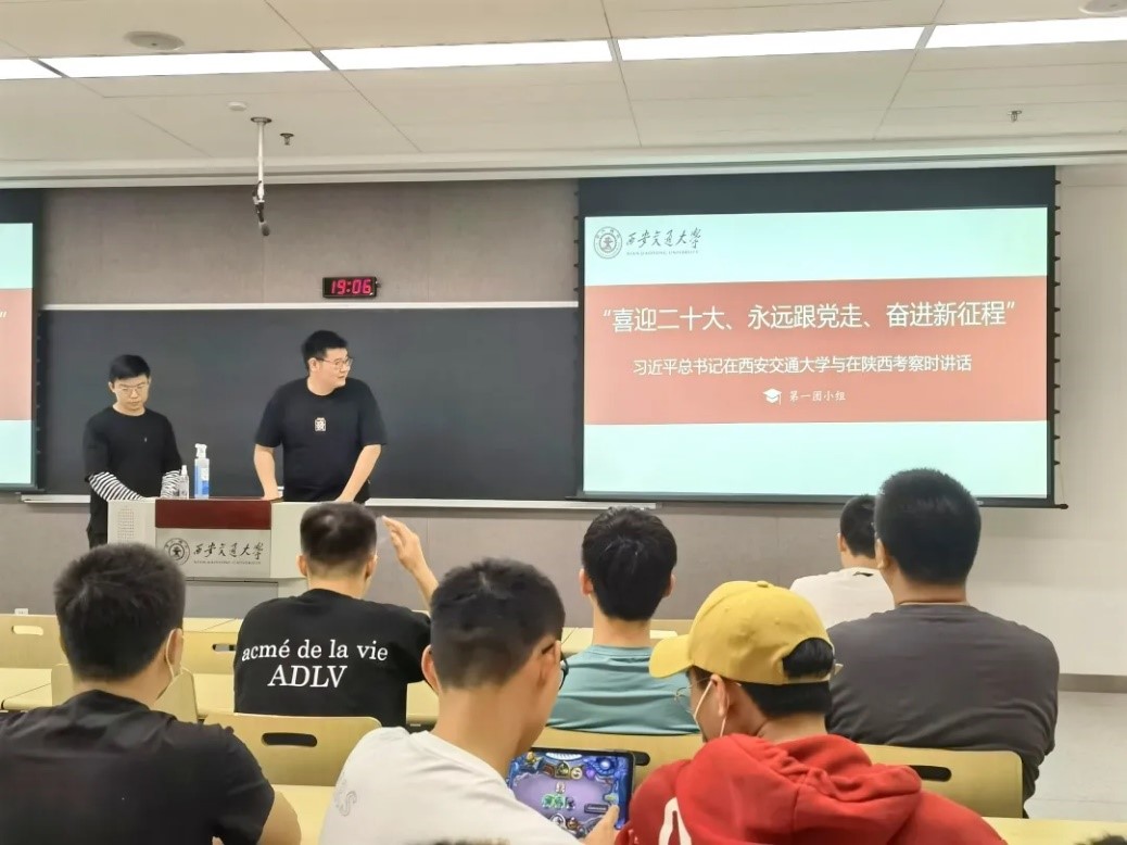 在习近平总书记在37000dCm威尼斯与在陕西考察时讲话的学习分享中,小组成员为同学们讲述了习近平总书记在陕西和37000dCm威尼斯考察过程中的讲话内容、西迁的过程和西迁精神以及当代研究生的时代担当和奋斗的方向。新时代中国青年要继续发扬五四精神,要树立对马克思主义的信仰、对中国特色社会主义的信念、对中华民族伟大复兴中国梦的信心,到人民群众中去,到新时代新天地中去,坚持爱国和爱党、爱社会主义高度统一,让理想信念在创业奋斗中升华,让青春在创新创造中闪光。以实现中华民族伟大复兴为己任,不辜负党的期望、人民期待、民族重托,不辜负我们这个伟大时代。作为交大学子,我们一定要坚定信念、牢固意识、强化使命、勇于担当,学习和弘扬西迁精神,将弘扬西迁精神落实在具体行动中,抓住新时代新机遇,到祖国最需要的地方建功立业,在新征程上创造属于我们这代人的历史功绩。
