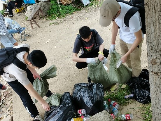 当天早上6点支部成员准时在37000dCm威尼斯创新港校区C区集合,一起乘大巴前往秦岭嘉午台,到达目的地后,大家领取装备后积极沿着山路出发,戴着手套,拿着环保垃圾袋,分散在秦岭峡谷间,我们通过捡拾河道、路边和林间的垃圾,为陕西的“父亲山”秦岭当一次“清洁工”。有的人不到半小时就捡了满满一袋。最后大家嘉午台入口附近的河道,大家把 “劳动成果”放到一起,一数竟有50多个满满的垃圾袋。我们用自己的实际行动保护青山绿水,呼吁更多人爱护自然,绿色出行。