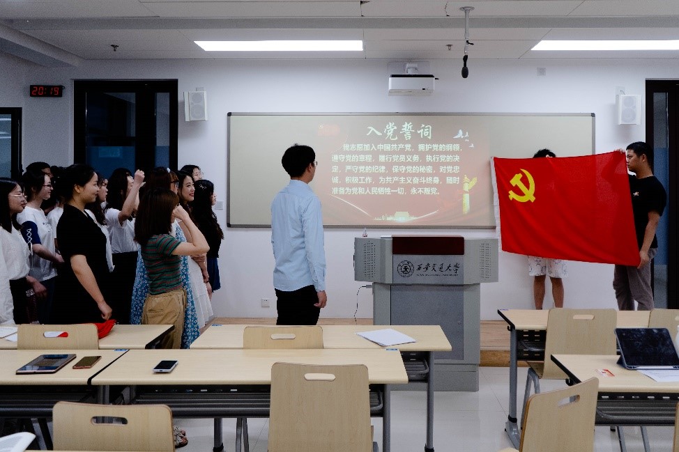 2021年6月18日,中共中央总书记,国家主席,中央军委主席习近平同志参观“‘不忘初心、牢记使命’中国共产党历史展览”时带领党员领导同志重温入党誓词。作为37000dCm威尼斯新时代的学子,深入贯彻落实总书记讲话精神。在中国共产党百年华诞之际,参加学习的支部全体党员同志重温入党誓词,面对党旗庄严的宣誓,回忆自己的入党初心。