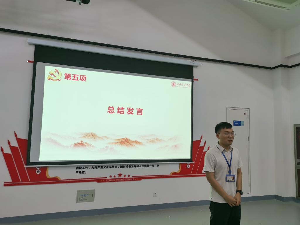 会议最后,杨江坤老师作了总结讲话。首先杨江坤老师表达了对同学们的感谢,希望通过这次成立大会能让大家互相加深对彼此的认识,此次大会不仅可以更好地促进交流,而且有利于各部门的互相熟悉,进一步开展工作。杨江坤老师提出:“组织把准方向,理论武装头脑,实践锻炼真知,宣传巩固成果。”同时提出对每一位成员的殷切希望,期望大家能充分利用好学院的平台,在今后的党建办工作中不断地提升自己,为学院党建工作贡献自己的智慧与力量。