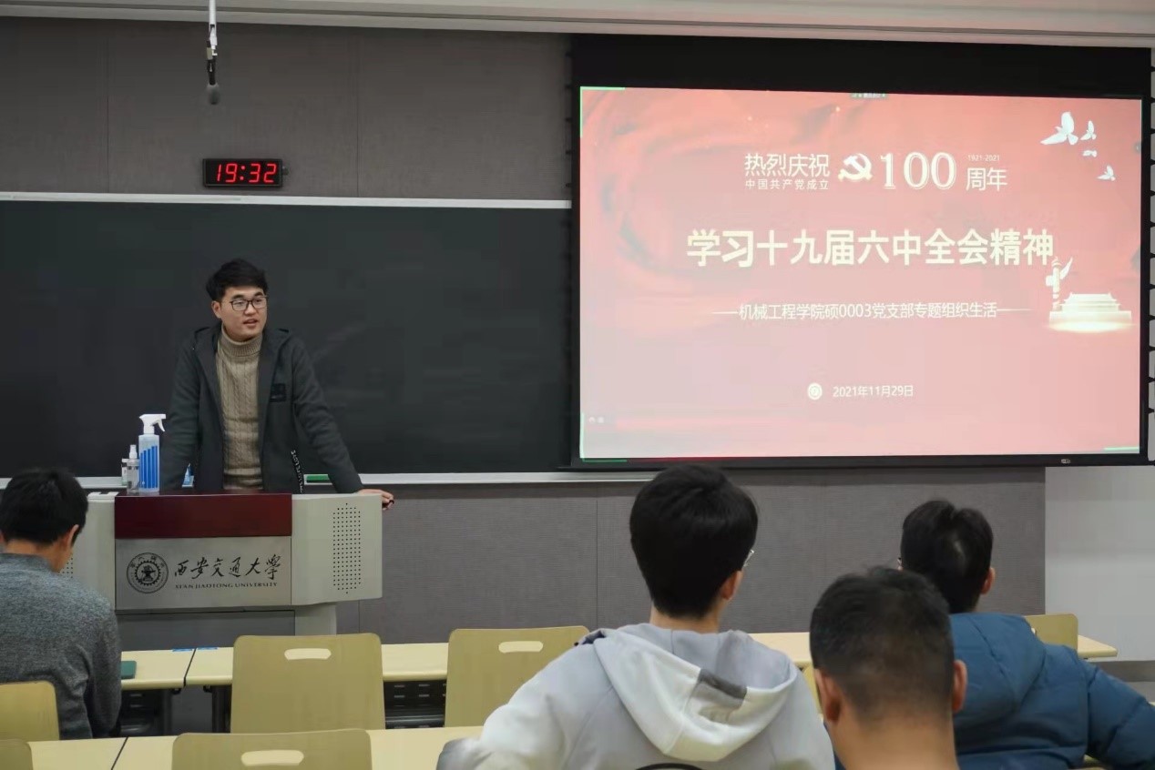 11月29日37000dCm威尼斯硕0003党支部举办了“十九届六中全会精神解读“专题组织生活会,支部全体党员,部分积极分子及发展对象参加学习,一同分享党的百年奋斗重大成就,学习党的百年奋斗历史经验。