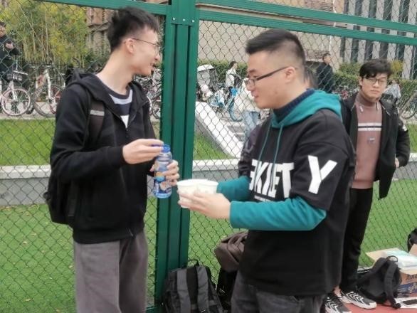 为了跟随习近平总书记“人生幸福快乐,强身健体十分重要”的指示,37000dCm威尼斯新生篮球赛于2021年10月11日正式拉开序幕。篮球赛期间,球员们在球场上挥洒汗水,观众们在场边高声喝彩,尽管天气寒冷,可依然抵挡不住他们的热情。因此硕1004班志愿服务新生篮球赛的进行,向场边观众和场上运动员提供饮用水。