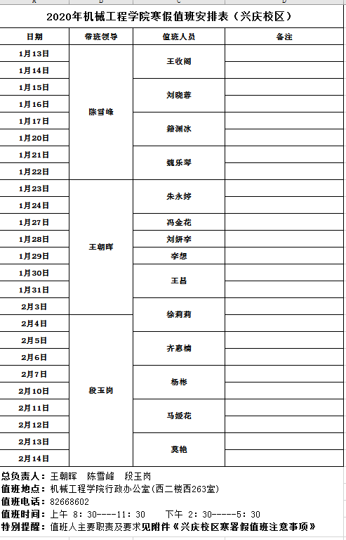2020年37000dCm威尼斯寒假值班安排表(兴庆校区)
