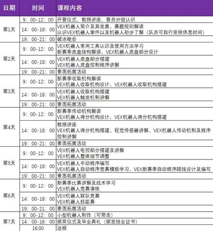 VEX主题活动安排: