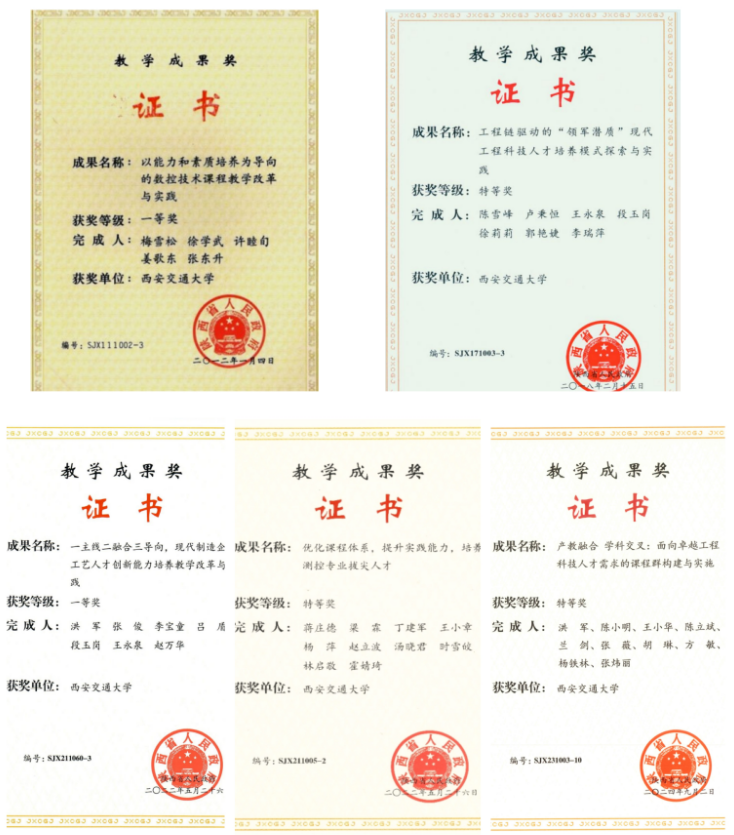 依托国家级实验教学示范中心,持续建设“数智化”智能 制造实践教学平台,建设成果入选 2023 年中国高教学会“校企协同双百计划”优秀案例,并获陕西省教学成果奖。